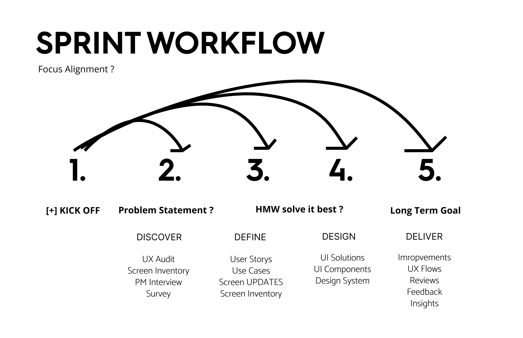 Wir analysieren und strukturieren ein Problemfeld Ihres Unternehmens, Ihrer Marke oder Ihrer Produkt-User-Journey (basierend auf vorhandenen Research-Daten), um neue Feature-Lösungen oder neue User-Flows zu entwickeln. Das Design-Sprint-Framework dient dazu, in kurzer Zeit Ideen zu entwickeln, zu bewerten und zu prototypisieren.